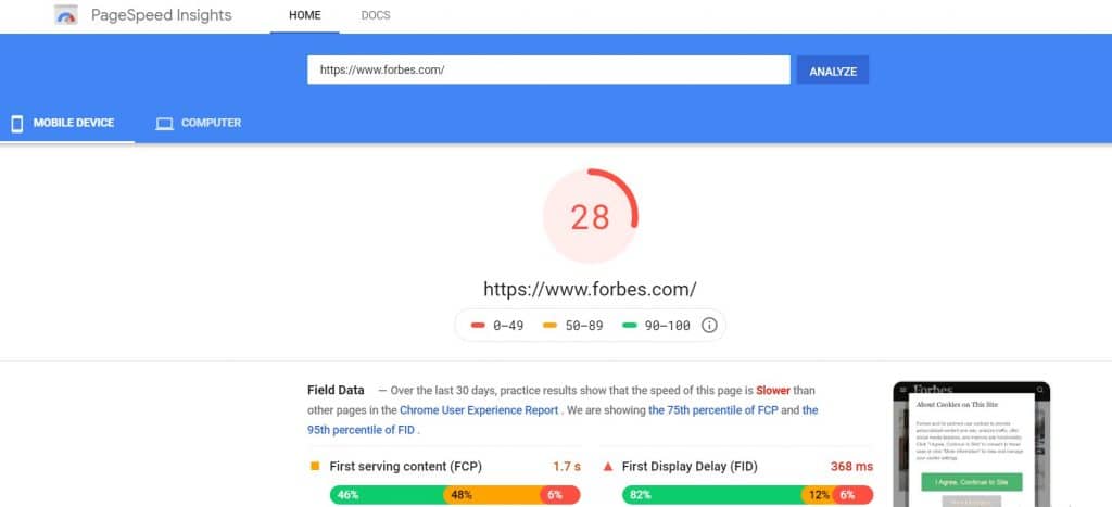 All you need to do is to enter the link of your website and you’ll get all the info, for both the mobile devices and the website. The results will look something like this: