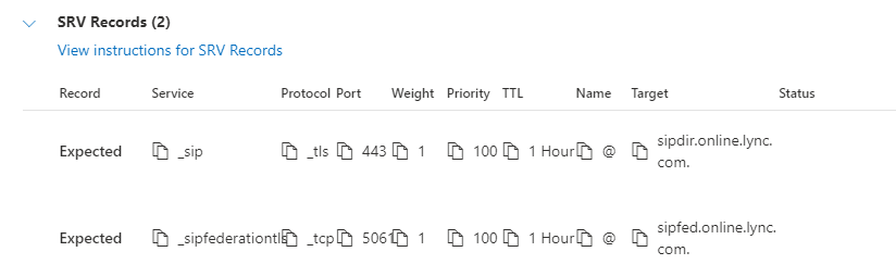 Adding SRV Records for Communications Services (Teams, Skype for Business)