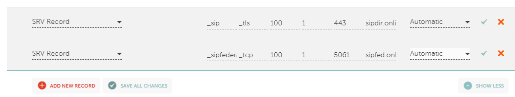 - To support Teams and Skype, add SRV records in your DNS manager.
