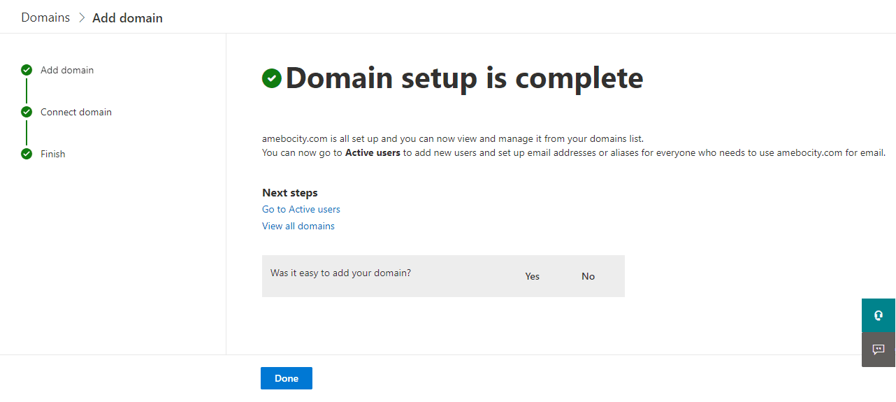 By following this guide, you’ll successfully connect your custom domain to Microsoft 365. The screenshot below shows the domain name used in the example connected successfully.