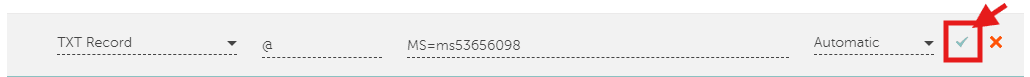 - TXT Value: MS=ms######## (unique ID from the admin center)