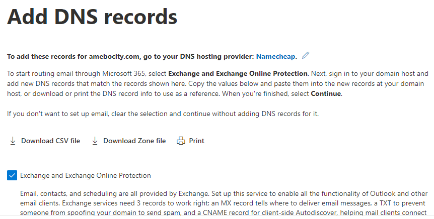 After verification, it’s time to add DNS records to enable Microsoft 365 services such as email, Teams, and Skype for Business.