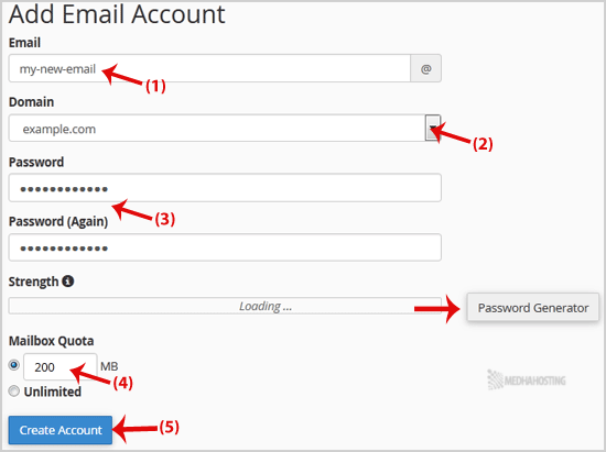 5. Change the quota or leave this as it is and then click on the “Create Account” button.