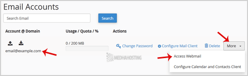 Once your email account is created, it will appear under the “Account & Domain” tab.