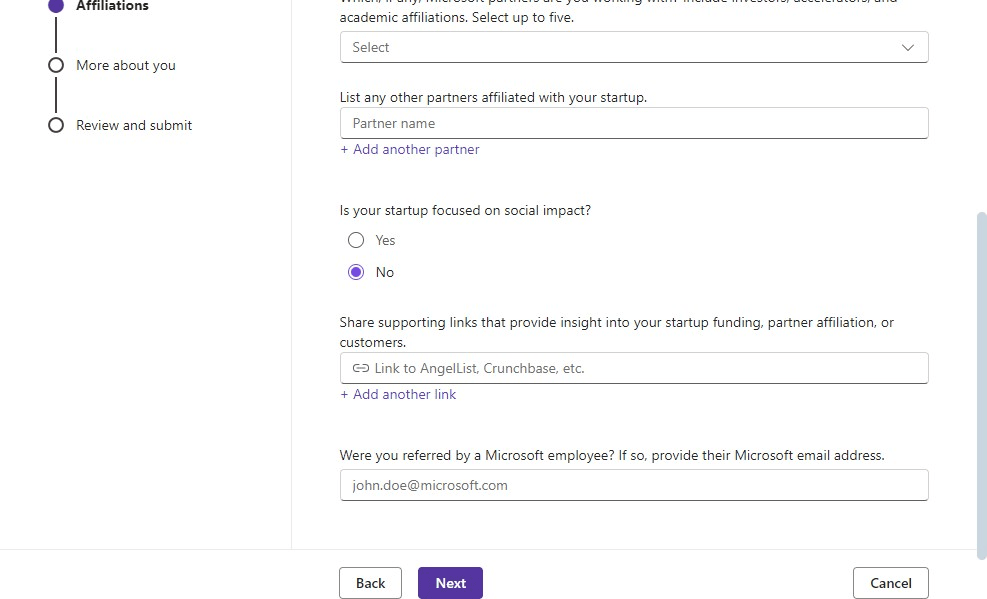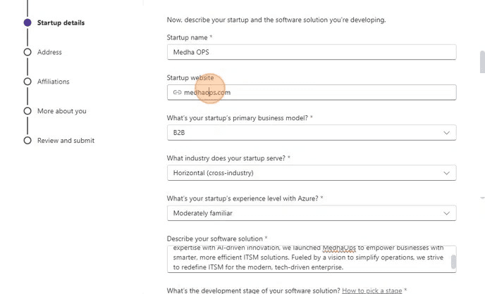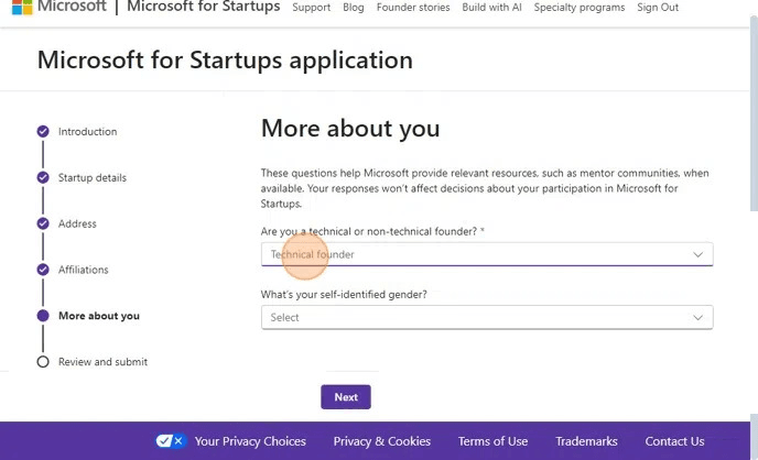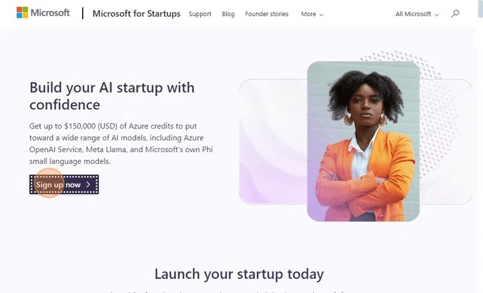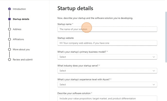 - Visit the Microsoft for Startups page.