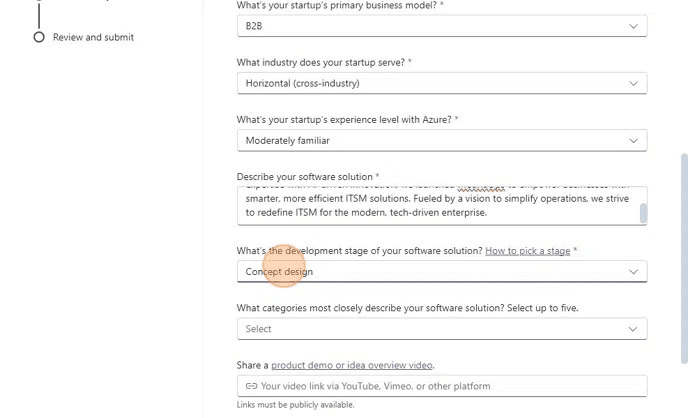 - Select the development stage of your software solution