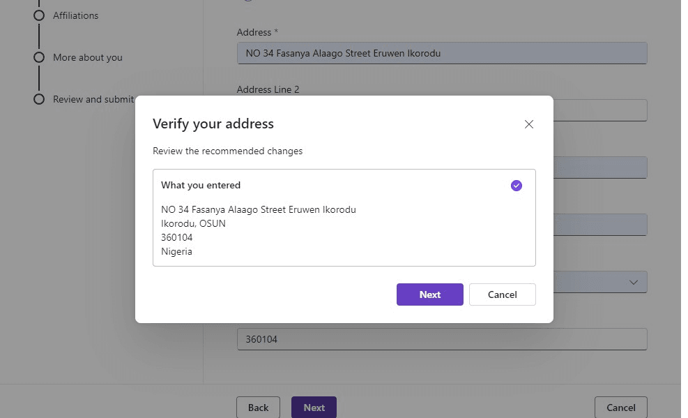 8. Verify Your Address and click Next