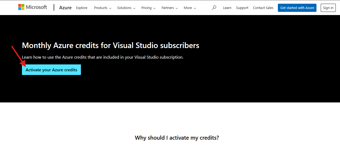 1. Access the Visual Studio subscriber page and click "Activate your Azure credits".