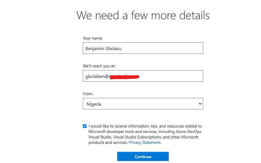 2. Enter your details and click 'Continue'.
