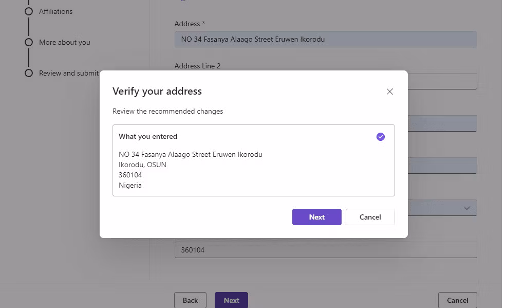 7. Input your address details, including your state, country, phone number, and postal code then click “Next”.