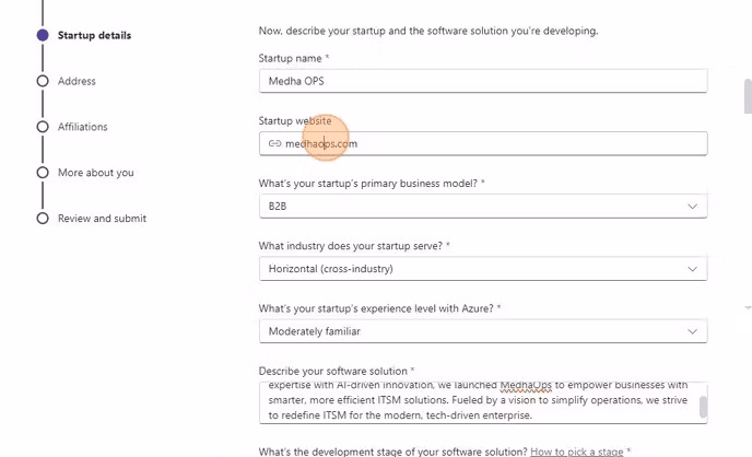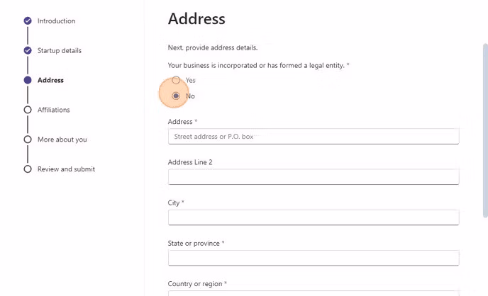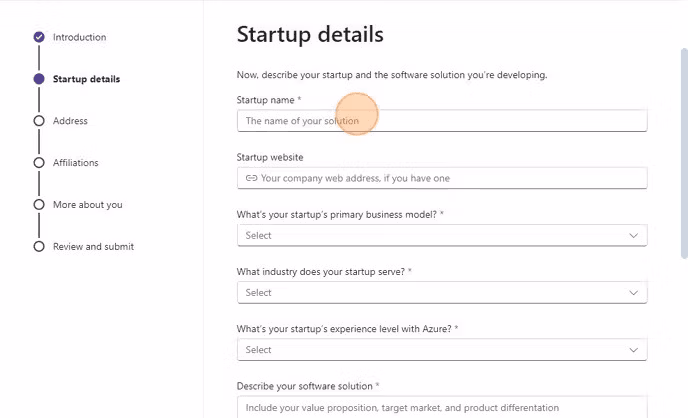 1. Navigate to https://www.microsoft.com/en-us/startups