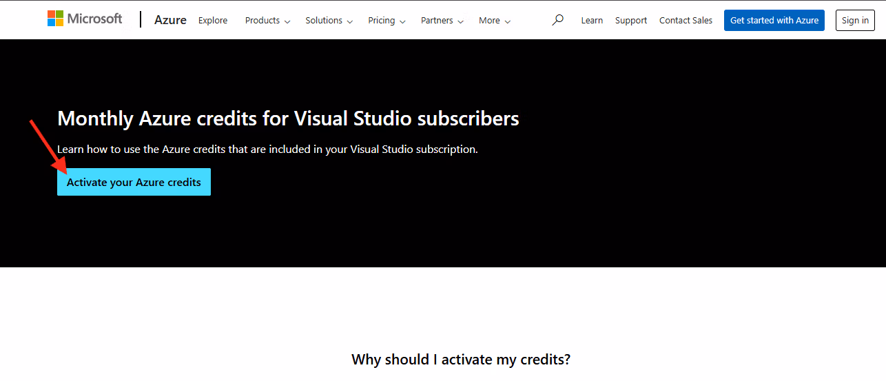 1. Access the Visual Studio subscriber page and click “Activate your Azure credits”.