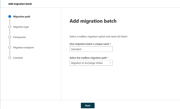 - Start Migration Batch: Go to Exchange Admin Center > Migration > Add Migration Batch.