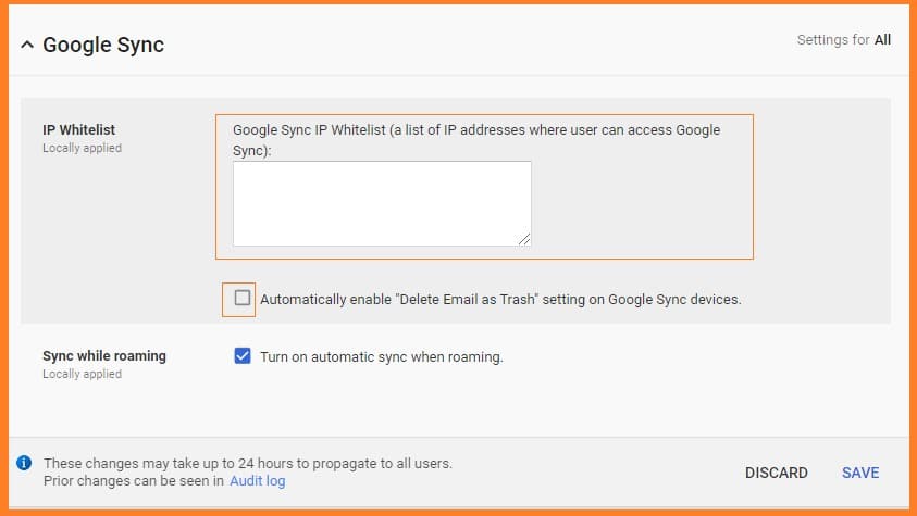 So, if you don't allow them to synchronize if they of a VPN or if they are not synchronized on the mobile data, then you can put in the "white listed IP address."