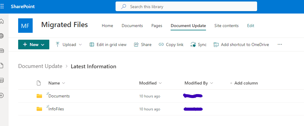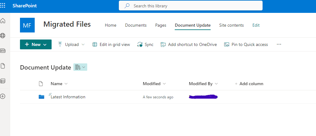 I accessed the SharePoint Admin Center and created a new site to serve as the destination for shared drive file migration. Next, I set up a new document library and folder within the site. migration.