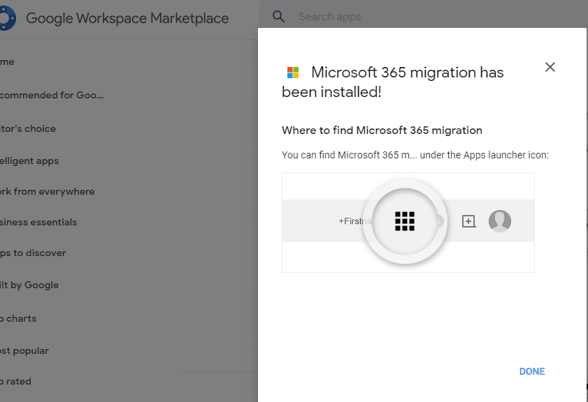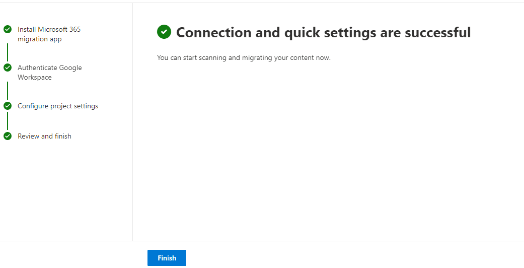 The Google Workspace migration setup is now complete, and the connection has been successfully established.