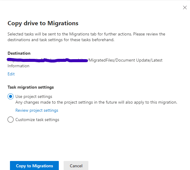 Notably, this migration supports both OneDrive and SharePoint as destination paths, but OneDrive was chosen for this migration.