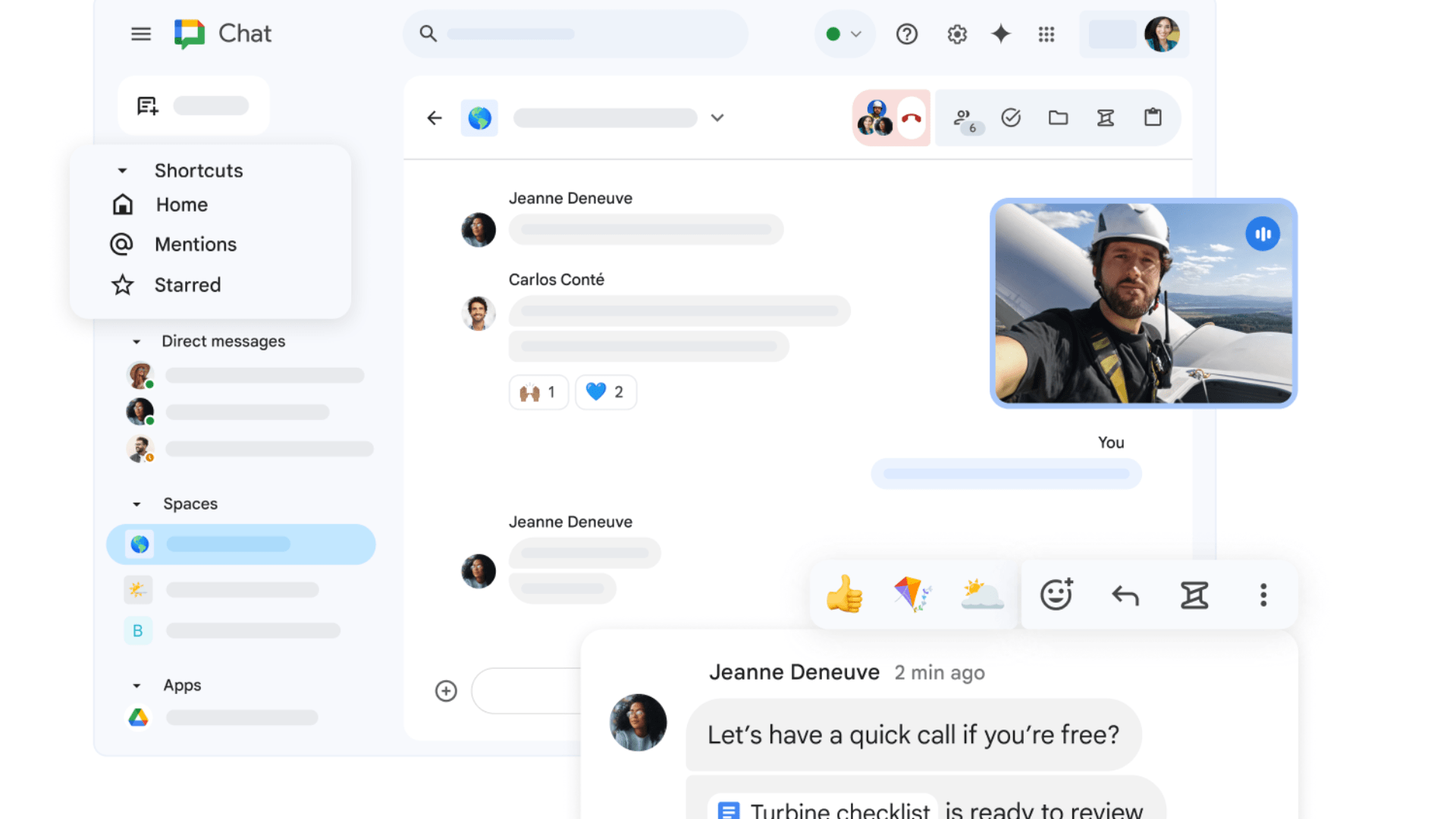 Additionally, Google Chat provides message suggestions and prompts that help users keep conversations moving efficiently, improving overall communication speed and effectiveness.