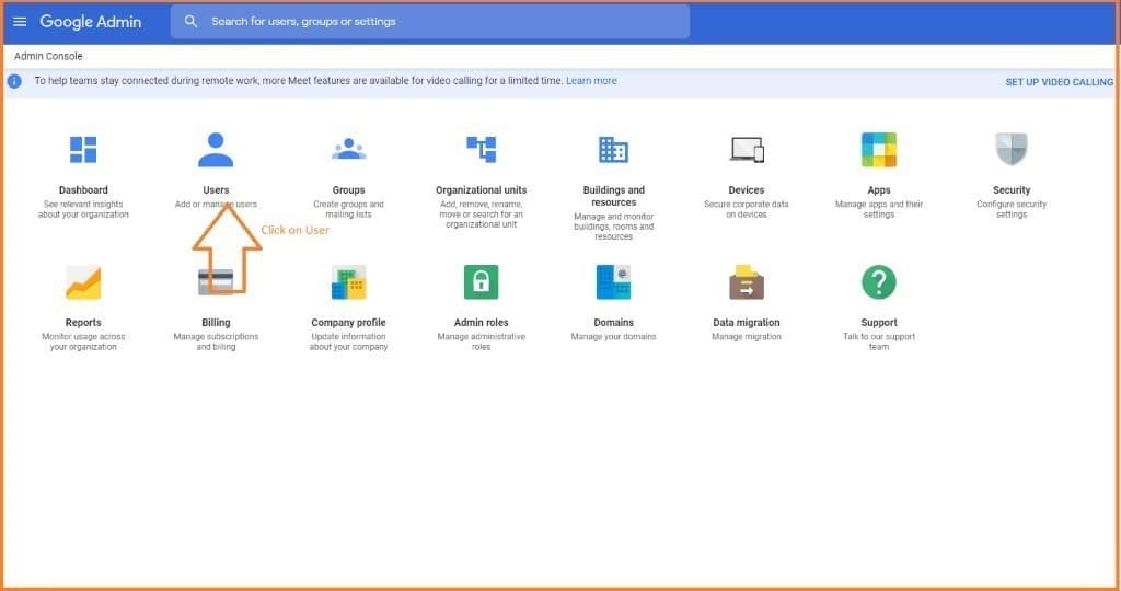 Go to Admin console and click on users
