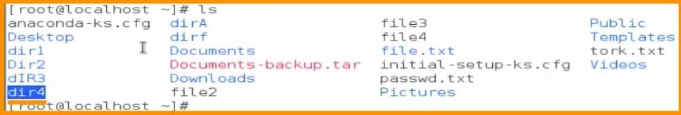 Check if the directory is created – Enter the command ls and press Enter. You can see that dir4 is created.