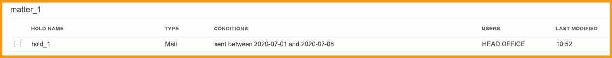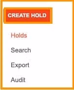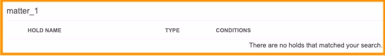 Now to create a Hold in the created matter, Click on CREATE HOLD.