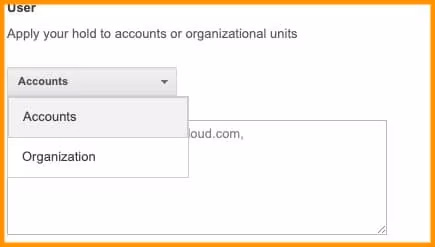 Users can be selected based on accounts or Organizations. Select the account and enter the account details below