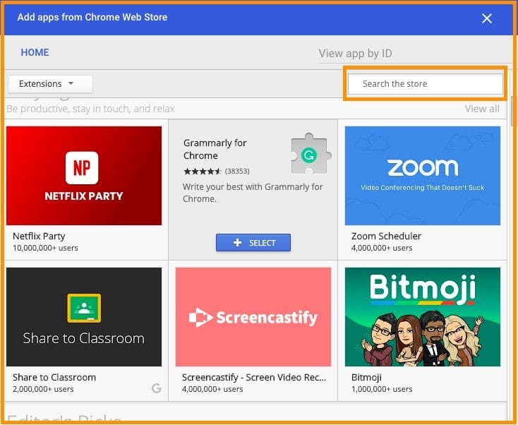 On the same page as above, Scroll down to Apps and extensions to add apps. Click on apps & extensions page.