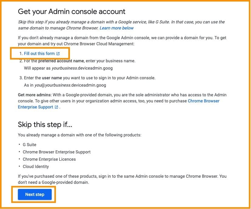 Click on “Fill out this form” and click on “Next step”. Now install the earlier downloaded .reg file and Close the chrome browser and Restart it.