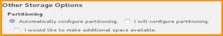Select “Automatically configure partitioning” to partition automatically, or if you wish to do it manually, click on “I will configure partitioning.”