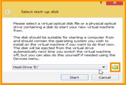 Select the downloaded CentOS file by clicking the file symbol, as shown in the image, and click START.
