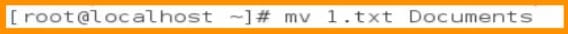 To move files use the command mv source destination. For example, to move a file 1.txt to directory Documents. Type the command mv 1.txt Documents and press enter.![]()