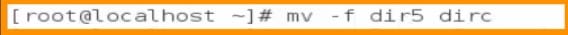 mv –f source destination. For example, to move dir5 to dirc without asking for confirmation type, the command mv –f dir5 dirc and press enter![]()
