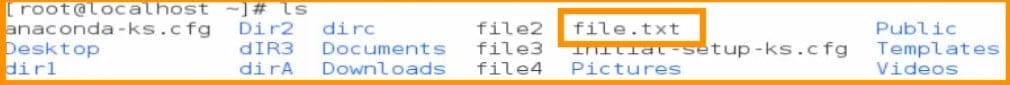 Use the command ls to check if the name is changed. Type ls and press enter. You can see the file name is changed to file.txt.