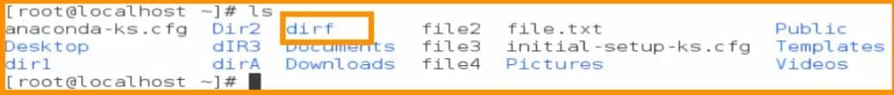Check if name is changed- Use the command ls to check if the name is changed. Type ls and press enter. You can see the directory name is changed to dirf .