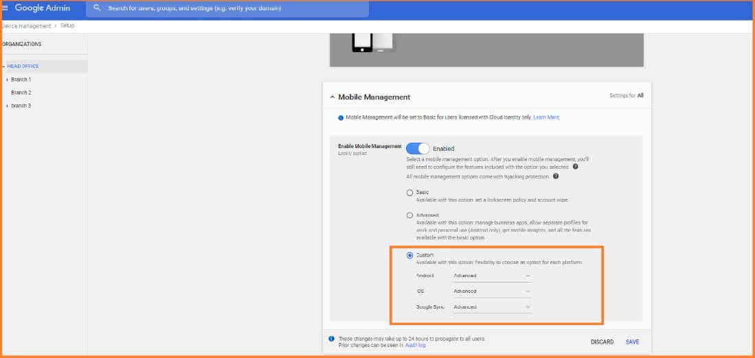 Check if Android, OS, Google Sync are set to “ADVANCED” in Custom.