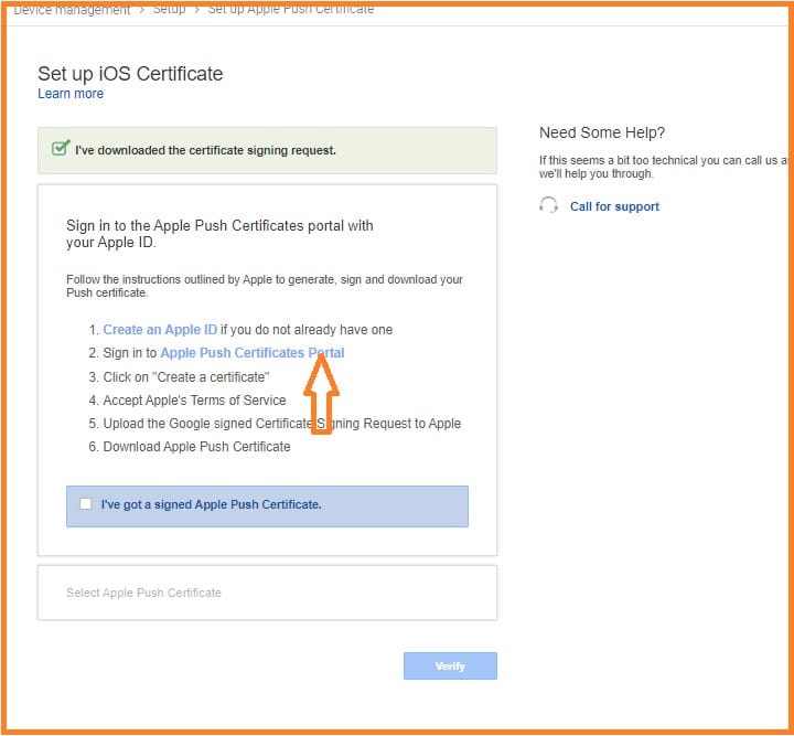 How to set up Apple Push Certificate in G Suite? (Device Management)