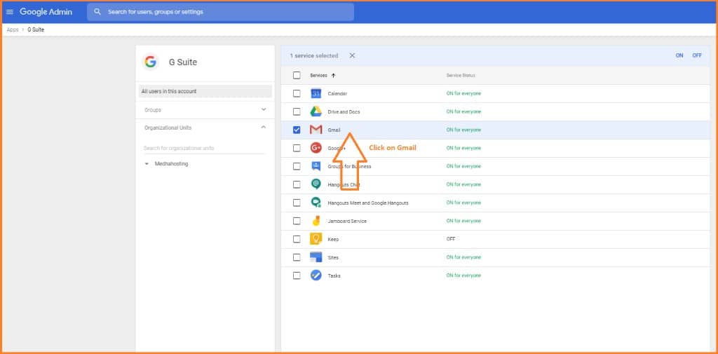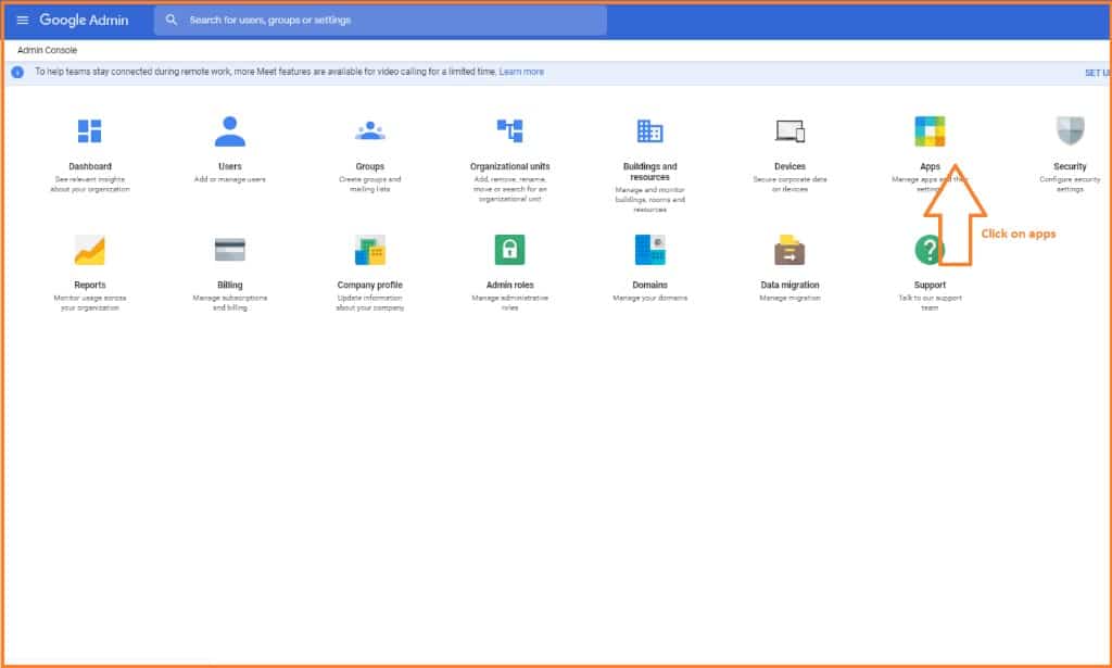 Click on Apps and then click on G-Suite as shown in the screenshot given below