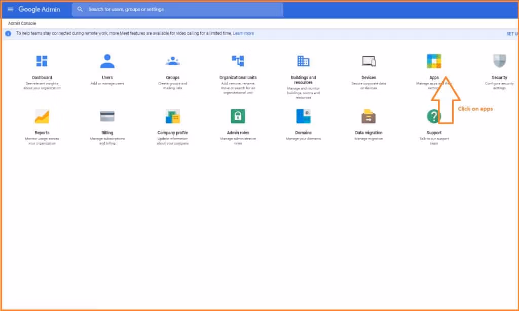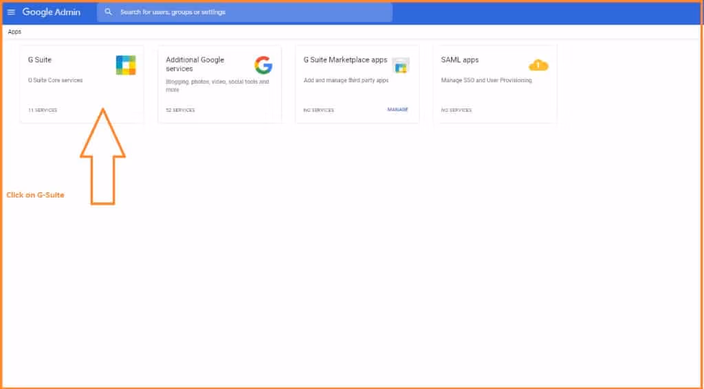 Click on Apps and then click on G-Suite as shown in the screenshot given below
