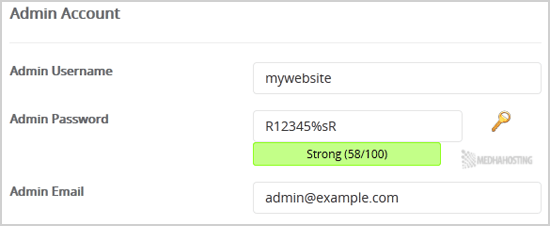 Admin username: Your new b2evolution username (for security reason do not use the “Administrator” or the “Admin” username.)