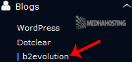 5. On the left side of your screen you should locate the “Blogs” category. Click on it and then click on the “b2evolution” link that will appear.