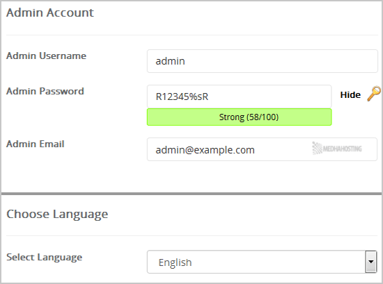 9. Choose language: You can chose the language of your Concrete5. The default language of Concrete5 is English.