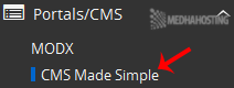 4. On the left side of your screen you should locate the “Portal/CMS” category. Click on it and then click on the “CMS Made Simple” link that will appear.