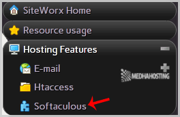 2. Under “SiteWorx Menu“, click the “Hosting Features” menu item if it is not already open.
