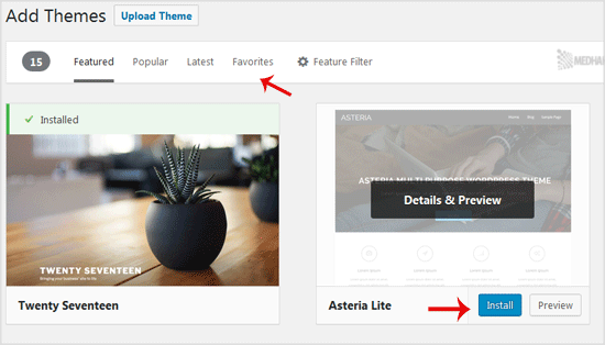 4. In Add themes page, you can search for a theme or browse the themes from “Featured”, “Popular”, “Latest” options. If you hover your mouse over any themes, you will be presented with two options – “Activate” and “Live Preview”.
