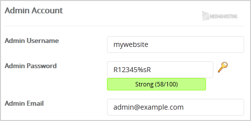 8. Under the “Admin Account” field enter the following information: