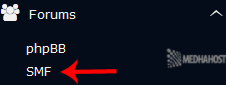 4. On the left side of your screen you should locate the “Forums” category. Click on it and then click on the “SMF” link that will appear.