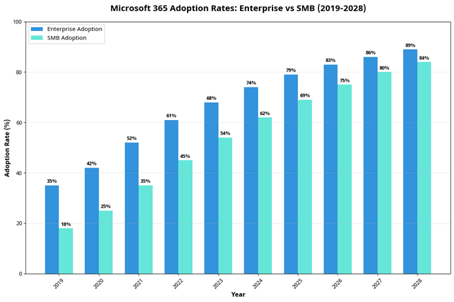 The broader Office 365 management software market is forecast to grow from $12.5 billion in 2024 to $26.98 billion by 2031, reflecting a robust 11.6% CAGR.
