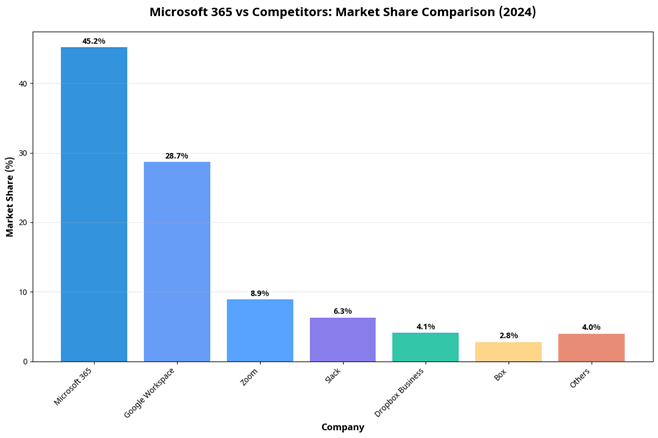 Despite intense competition, Microsoft 365 maintains a dominant lead over Google Workspace and other productivity platforms.