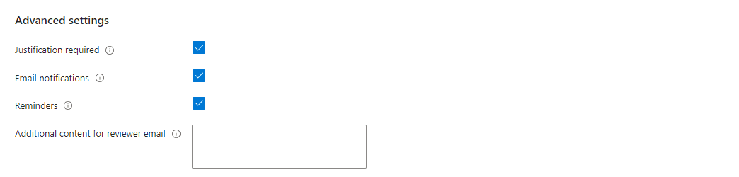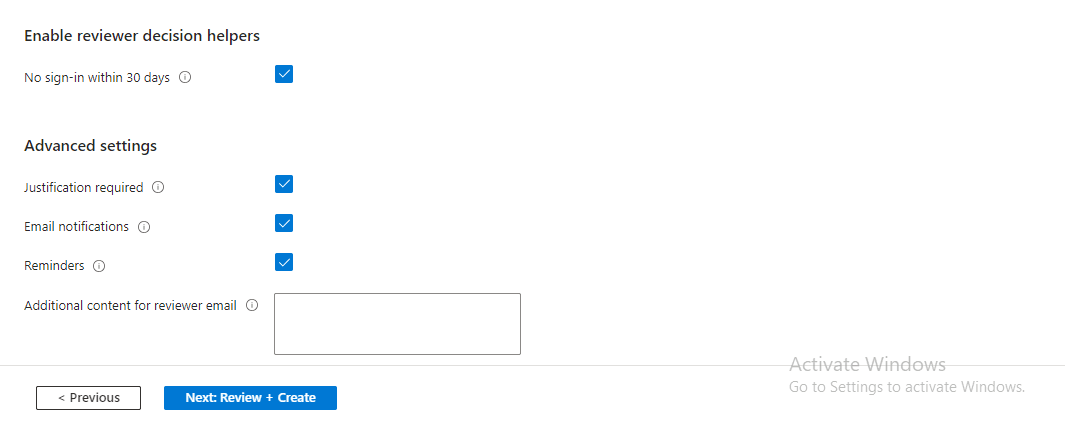 Step 4: Configure Advanced Settings Under Advanced Settings, I checked the box for ‘Justification required’ to ensure that reviewers provide a justification for their decisions when denying or approving a user’s access.