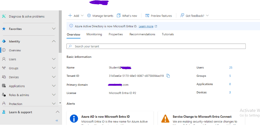 - I signed in to Microsoft Entra ID (Azure AD) as a Global Administrator.